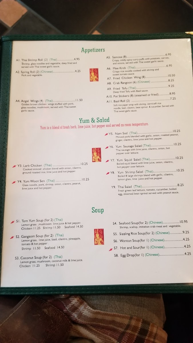 “ Very good restaurant, we enjoyed our entres, the atmosphere, and the service was top-notch too. We ate here for lunch, we were seated right away, the food was served quickly. My wife had Thai Noodle, I had Rummit Shrimp. The dishes included a small bowl of soup, spring roll, and a much needed fortune cookie! Very good dining experience all the way around. ”